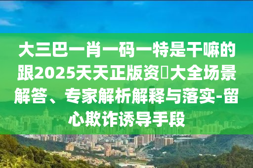 關(guān)于關(guān)鍵詞“大三巴一肖一碼一特”、“2025天天正版資料大全”以及相關(guān)的場(chǎng)景解答、專家解析和防范措施,以下是對(duì)這些內(nèi)容的全面釋義、解釋與落實(shí),并提醒公眾警惕虛假宣傳與欺詐誘導(dǎo)手段。