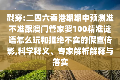關(guān)于戳穿“二四六香港期期中預(yù)測(cè)準(zhǔn)不準(zhǔn)”與“澳門(mén)管家婆100精準(zhǔn)謎語(yǔ)”的真?zhèn)我约翱茖W(xué)釋義、專(zhuān)家解析解釋與落實(shí)的探討,并警惕公眾避免受到虛假宣傳的影響