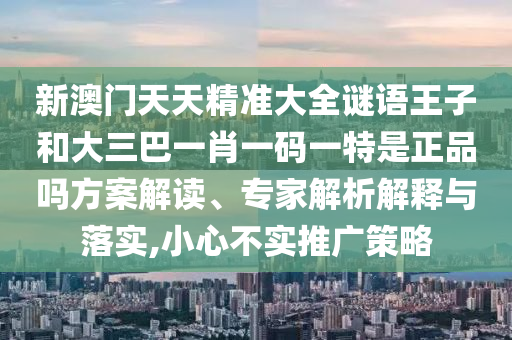 新澳門天天精準(zhǔn)大全謎語王子和大三巴一肖一碼一特是正品嗎方案解讀、專家解析解釋與落實,小心不實推廣策略