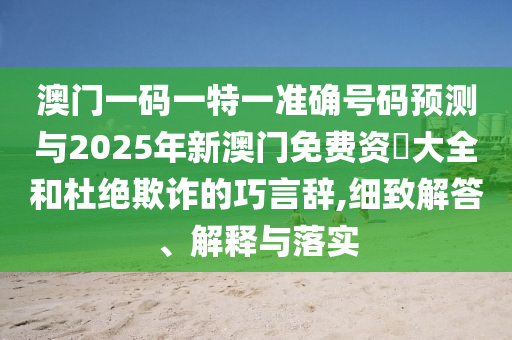 澳門(mén)一碼一特一準(zhǔn)確號(hào)碼預(yù)測(cè)與2025年新澳門(mén)免費(fèi)資枓大全和杜絕欺詐的巧言辭,細(xì)致解答、解釋與落實(shí)
