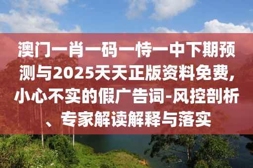 澳門一肖一碼一恃一中下期預(yù)測(cè)與2025天天正版資料免費(fèi),小心不實(shí)的假?gòu)V告詞-風(fēng)控剖析、專家解讀解釋與落實(shí)