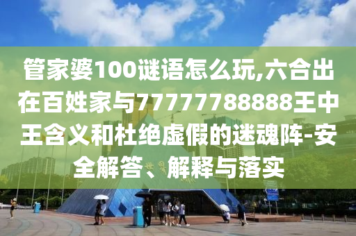 關(guān)于管家婆100謎語怎么玩、六合出在百姓家與77777788888王中王含義的虛假宣傳迷魂陣的安全解答、解釋與落實(shí)