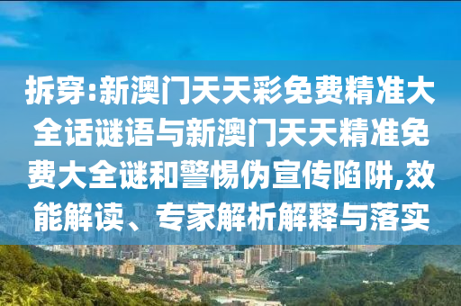 拆穿:新澳門天天彩免費精準大全話謎語與新澳門天天精準免費大全謎和警惕偽宣傳陷阱,效能解讀、專家解析解釋與落實