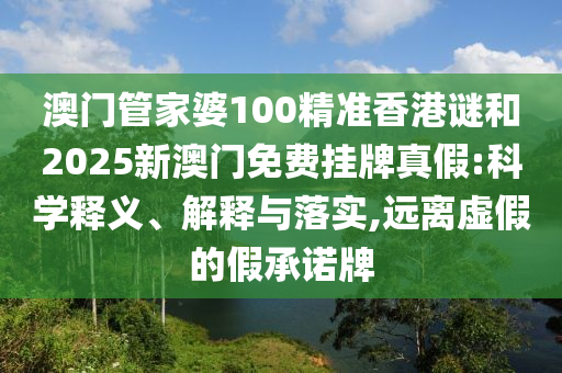 澳門管家婆100精準(zhǔn)香港謎和2025新澳門免費掛牌真假:科學(xué)釋義、解釋與落實,遠離虛假的假承諾牌