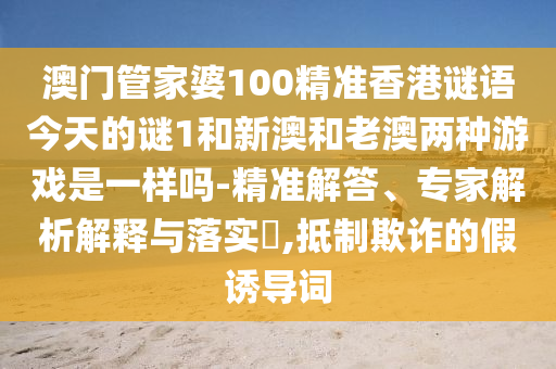 澳門管家婆100精準(zhǔn)香港謎語今天的謎1和新澳和老澳兩種游戲是一樣嗎-精準(zhǔn)解答、專家解析解釋與落實(shí)?,抵制欺詐的假誘導(dǎo)詞