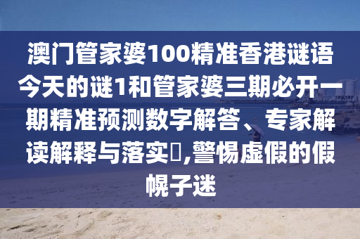 澳門管家婆100精準(zhǔn)香港謎語今天的謎1和管家婆三期必開一期精準(zhǔn)預(yù)測數(shù)字解答、專家解讀解釋與落實(shí)?,警惕虛假的假幌子迷