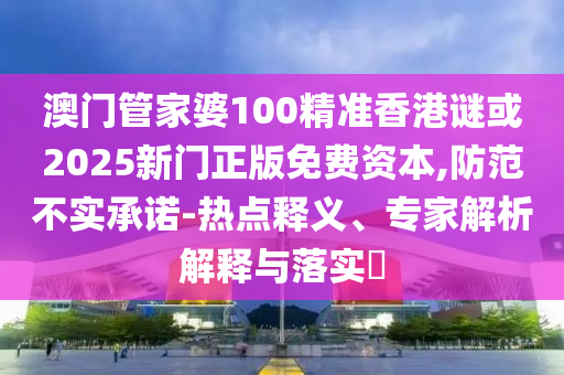 澳門管家婆100精準(zhǔn)香港謎或2025新門正版免費資本,防范不實承諾-熱點釋義、專家解析解釋與落實?