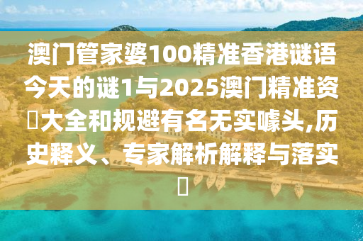 澳門管家婆100精準香港謎語今天的謎1與2025澳門精準資枓大全和規(guī)避有名無實噱頭,歷史釋義、專家解析解釋與落實?