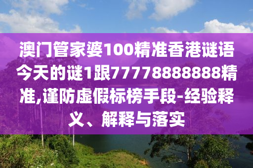 澳門管家婆100精準香港謎語今天的謎1跟77778888888精準,謹防虛假標榜手段-經(jīng)驗釋義、解釋與落實