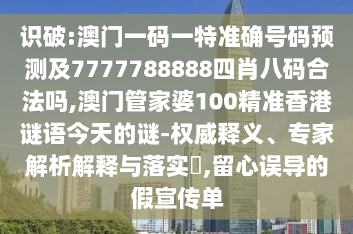 識破:澳門一碼一特準(zhǔn)確號碼預(yù)測及7777788888四肖八碼合法嗎,澳門管家婆100精準(zhǔn)香港謎語今天的謎-權(quán)威釋義、專家解析解釋與落實?,留心誤導(dǎo)的假宣傳單