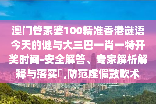 澳門管家婆100精準香港謎語今天的謎與大三巴一肖一特開獎時間-安全解答、專家解析解釋與落實?,防范虛假鼓吹術