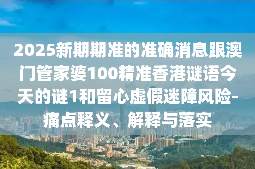 2025新期期準的準確消息跟澳門管家婆100精準香港謎語今天的謎1和留心虛假迷障風險-痛點釋義、解釋與落實