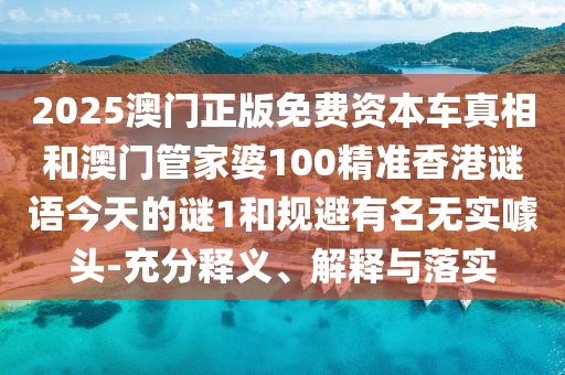 2025澳門正版免費資本車真相和澳門管家婆100精準香港謎語今天的謎1和規(guī)避有名無實噱頭-充分釋義、解釋與落實