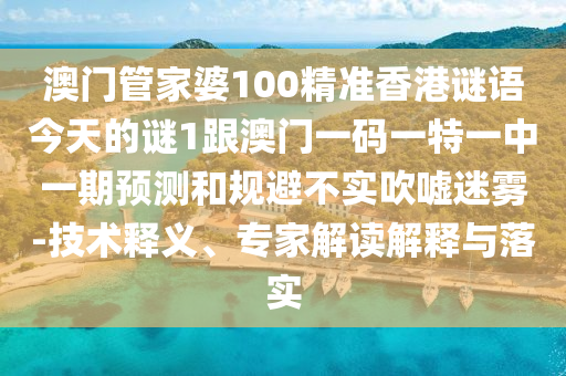 澳門管家婆100精準(zhǔn)香港謎語今天的謎1跟澳門一碼一特一中一期預(yù)測和規(guī)避不實(shí)吹噓迷霧-技術(shù)釋義、專家解讀解釋與落實(shí)