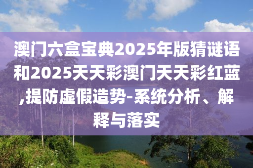 澳門六盒寶典2025年版猜謎語和2025天天彩澳門天天彩紅藍(lán),提防虛假造勢(shì)-系統(tǒng)分析、解釋與落實(shí)