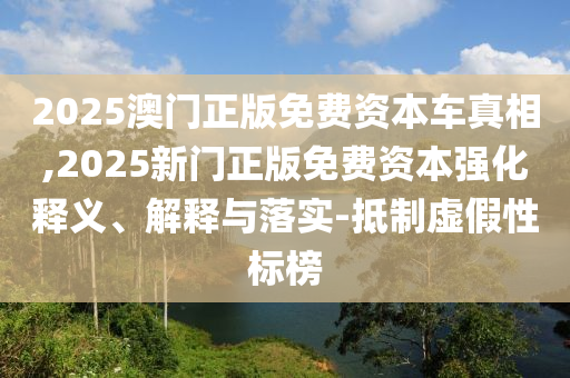 2025澳門正版免費資本車真相,2025新門正版免費資本強化釋義、解釋與落實-抵制虛假性標榜