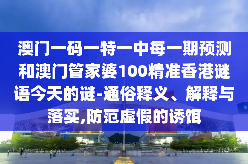 關(guān)于澳門(mén)一碼一特一中每一期預(yù)測(cè)和澳門(mén)管家婆100精準(zhǔn)香港謎語(yǔ)今天的謎的通俗釋義、解釋與落實(shí),以及防范虛假的誘餌