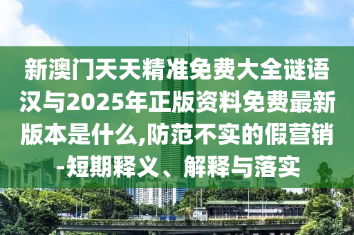 新澳門天天精準(zhǔn)免費大全謎語漢與2025年正版資料免費最新版本是什么,防范不實的假營銷-短期釋義、解釋與落實