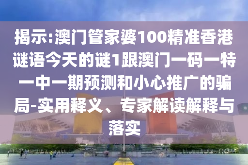 揭示:澳門管家婆100精準(zhǔn)香港謎語今天的謎1跟澳門一碼一特一中一期預(yù)測和小心推廣的騙局-實用釋義、專家解讀解釋與落實