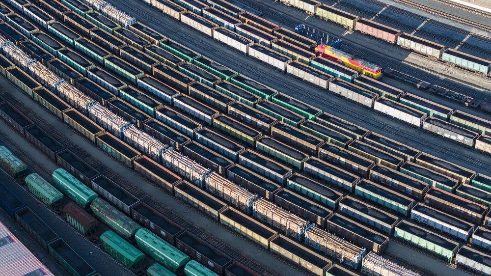 2025年10月18日,在中國鐵路哈爾濱局集團(tuán)有限公司綏芬河站南場(chǎng),滿載進(jìn)口貨物的列車等待解體換裝(無人機(jī)照片)。新華社發(fā)(曲藝偉 攝)