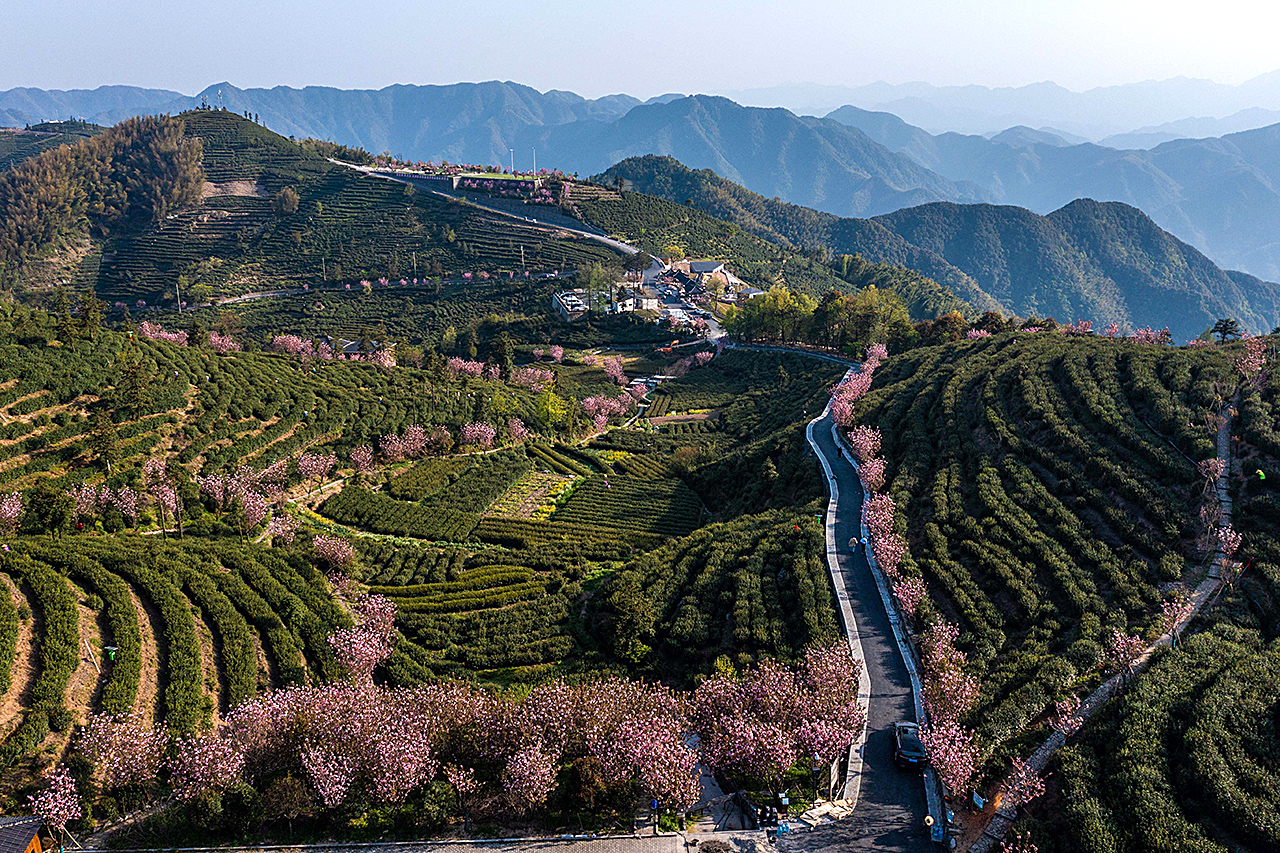 4月7日拍攝的里山鎮(zhèn)安頂山的高山云霧茶地(無(wú)人機(jī)照片)
