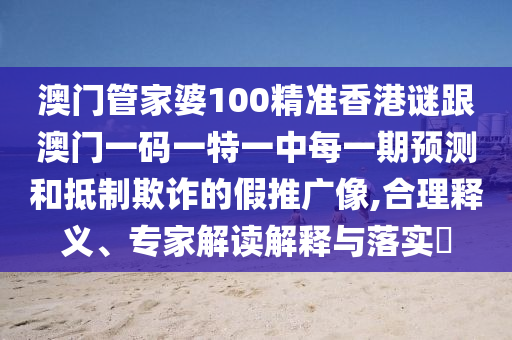 澳門管家婆100精準(zhǔn)香港謎跟澳門一碼一特一中每一期預(yù)測(cè)和抵制欺詐的假推廣像,合理釋義、專家解讀解釋與落實(shí)?