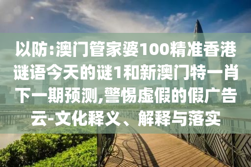 以防:澳門管家婆100精準(zhǔn)香港謎語今天的謎1和新澳門特一肖下一期預(yù)測,警惕虛假的假廣告云-文化釋義、解釋與落實(shí)