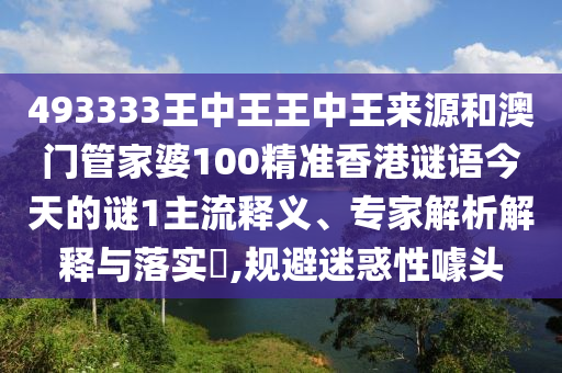 493333王中王王中王來源和澳門管家婆100精準(zhǔn)香港謎語今天的謎1主流釋義、專家解析解釋與落實?,規(guī)避迷惑性噱頭